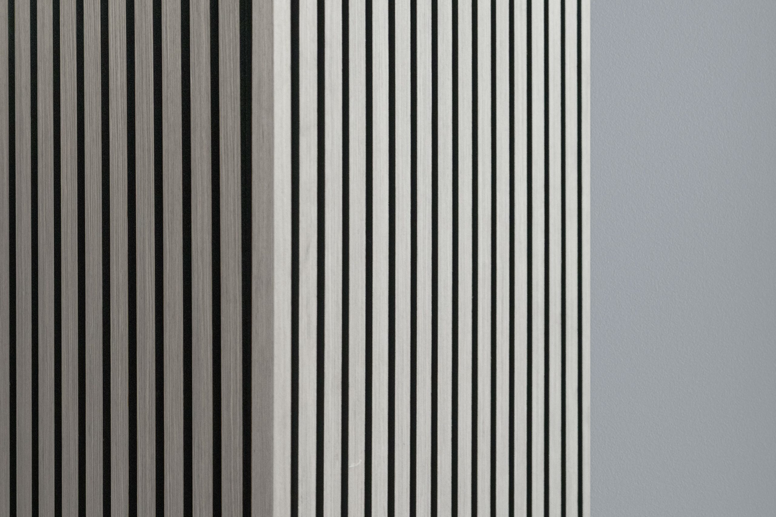 A szürke tölgy színű G21 záróprofil ideális választás az akusztikus panelek burkolatának elegáns lezárásához.