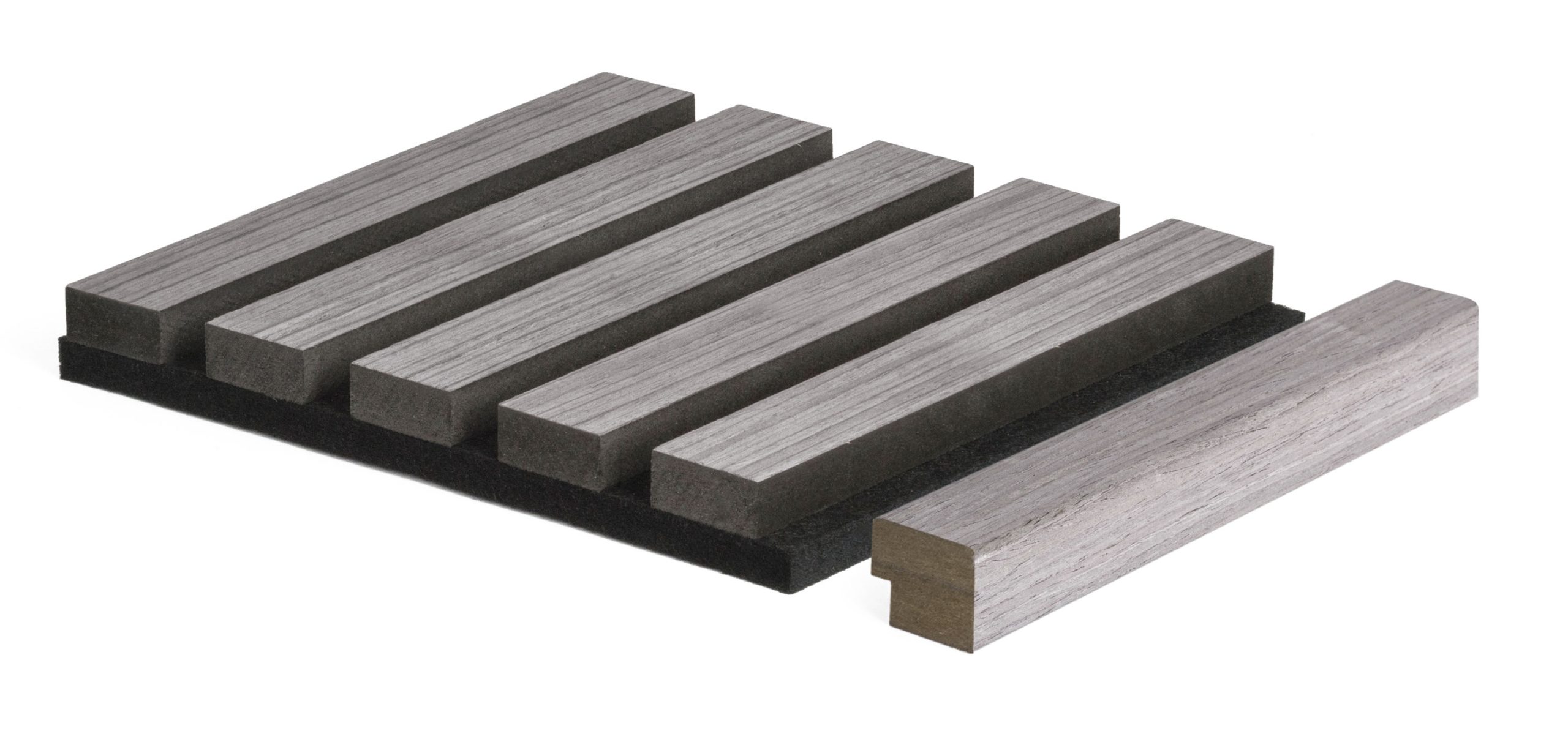 A szürke tölgy színű G21 záróprofil ideális választás az akusztikus panelek burkolatának elegáns lezárásához.