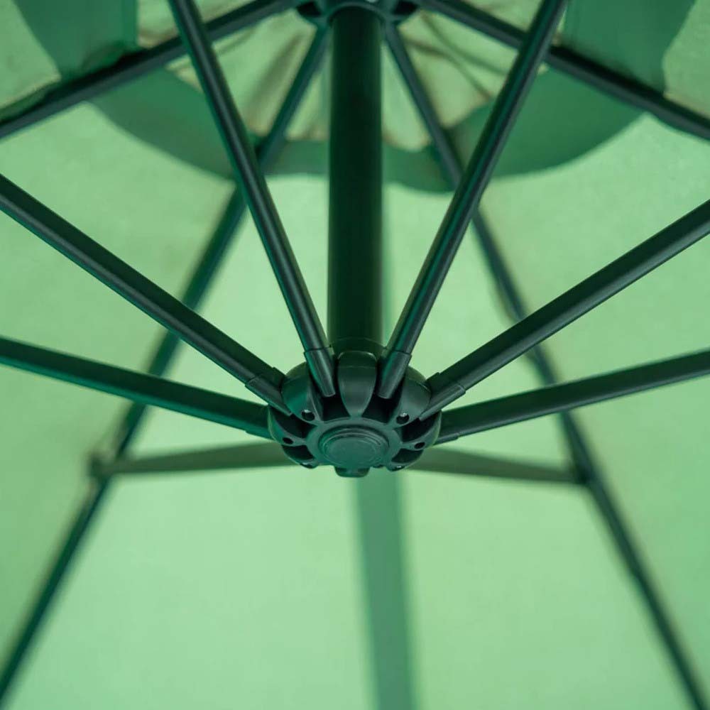 A nagy kerti ernyő olyan tartós acél csőszerkezettel rendelkezik. A termék kivételesen széles ernyővel rendelkezik , amelyet 8 bordás szerkezettel erősítenek meg. Előállításához poliésztert használnak, amelyet alacsony vízfelvétel jellemez. A felhasznált anyagoknak köszönhetően a nagyméretű ernyő tartós és könnyen kezelhető , ami jelentősen befolyásolja az élettartamot.