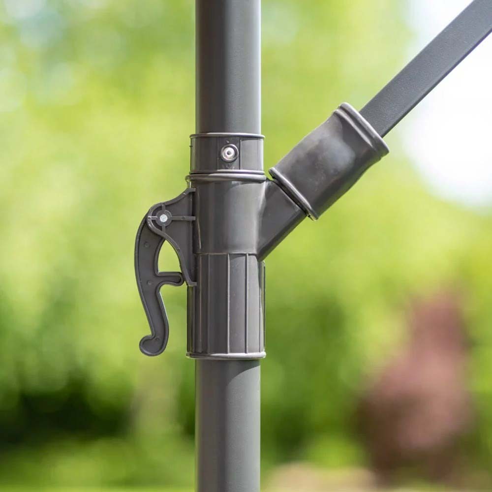 Dekoratív megjelenéssel készítve, ez a napvédő egyben a kert dísze is. Az ernyő könnyen használható és ellenáll az időjárási viszonyoknak. A tartórúd nem középen található így a keret kialakítása lehetővé teszi az ernyő ponyva alatt lévő hely teljes kihasználását.