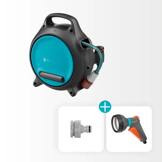 A Move hordozható tömlődoboz minden szükséges tartozékot tartalmaz az öntözéshez. A termék tartalmaz egy Classic Öntözőfejet, készüléktartót és Csapelemet adapterrel.