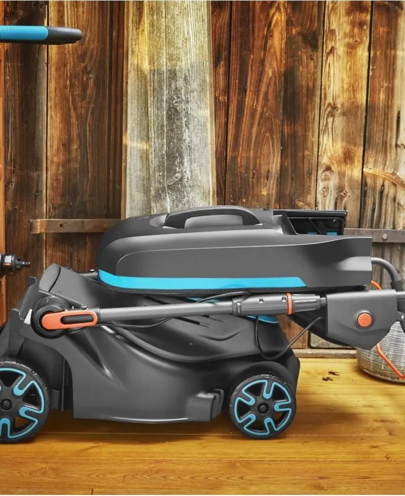 A fűnyírás után a tolókar praktikusan összecsukható az akkumulátoros fűnyíró helytakarékos tárolásához.