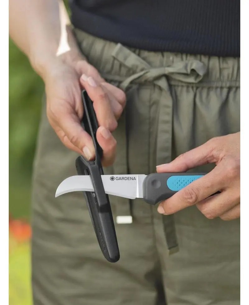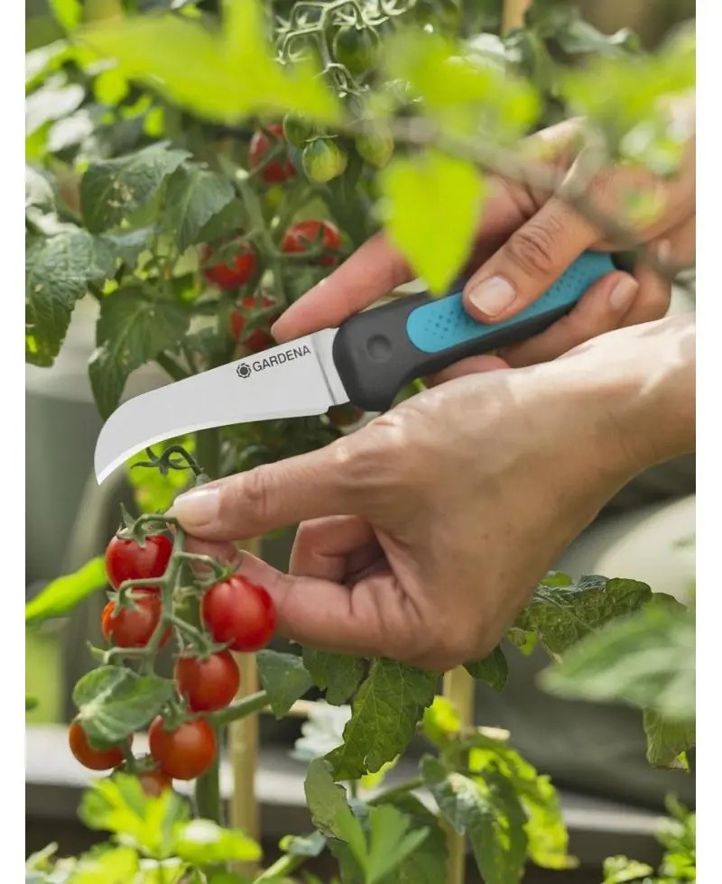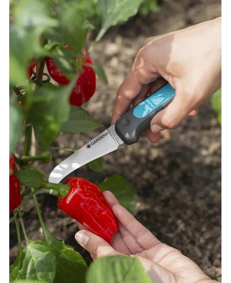 Használd a GARDENA praktikus VeggieCut termékét zöldségek és saláták betakarításához, tisztításához és hámozásához. A sarló alakú kés tartós rozsdamentes acélból készült. Lehetővé teszi a pontos, tiszta és könnyű vágásokat. A vastagabb zöldségeket, például cukkinit is vághatsz egyetlen mozdulattal. A mellékelt tok többféleképpen is segít. A német fejlesztésű kés a tokban mindig kéznél van szüreteléskor, és biztonságosan tárolható. Ha szükséges, használd a beépített élezőt. A kés ergonomikus ErgoTec markolata kényelmesen illeszkedik a kézbe, és a beépített puha alkatrészeknek köszönhetően csúszásmentes. Az élelmiszerbiztos VeggieCut nem bocsát ki semmilyen illatot vagy ízt. Ideálisan tárolható a konyhai falra akasztva, például, a fűzőlyuk használatával. A szüretelő kés nagyon könnyen tisztán tartható, mert mosogatógépben is mosható.