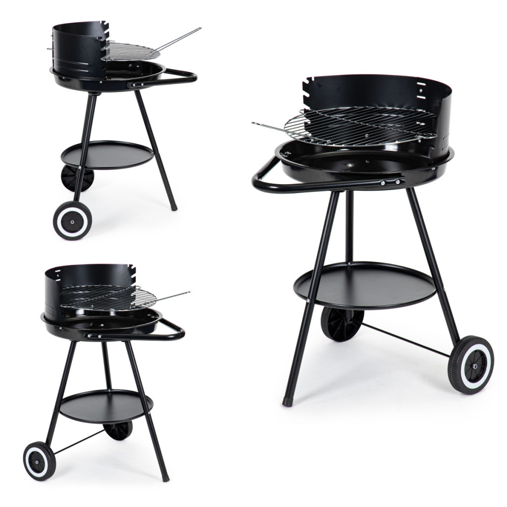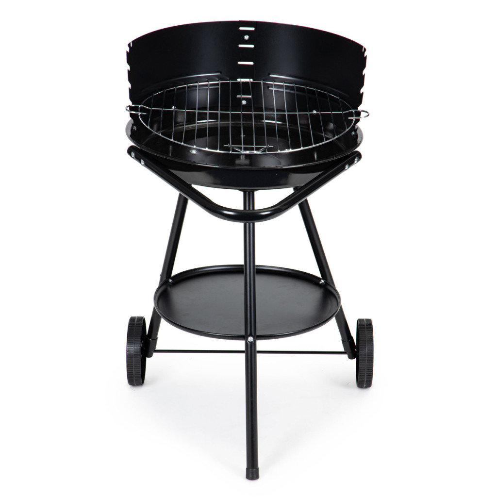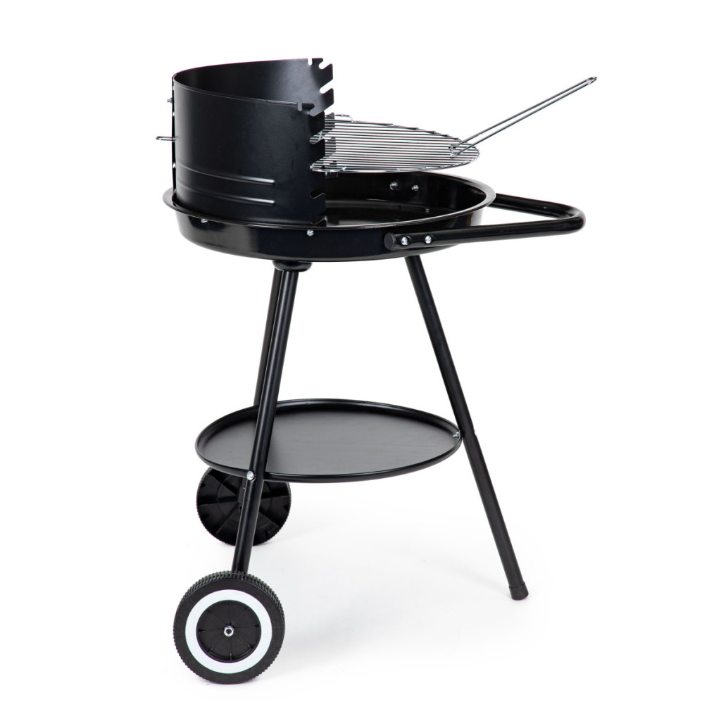 A tűztér alatt található praktikus polc szén vagy más grillezéshez szükséges eszközök tárolására alkalmas.