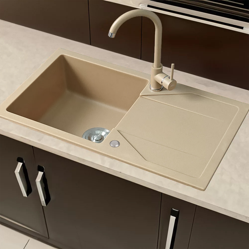 A Bézs gránit mosogató mindig divatos és időtlen megjelenést kölcsönöz konyhádnak. A színek széles választéka lehetővé teszi, hogy illeszkedjen a konyhai berendezésekhez és a környezethez, legyen az modern vagy klasszikus stílus.