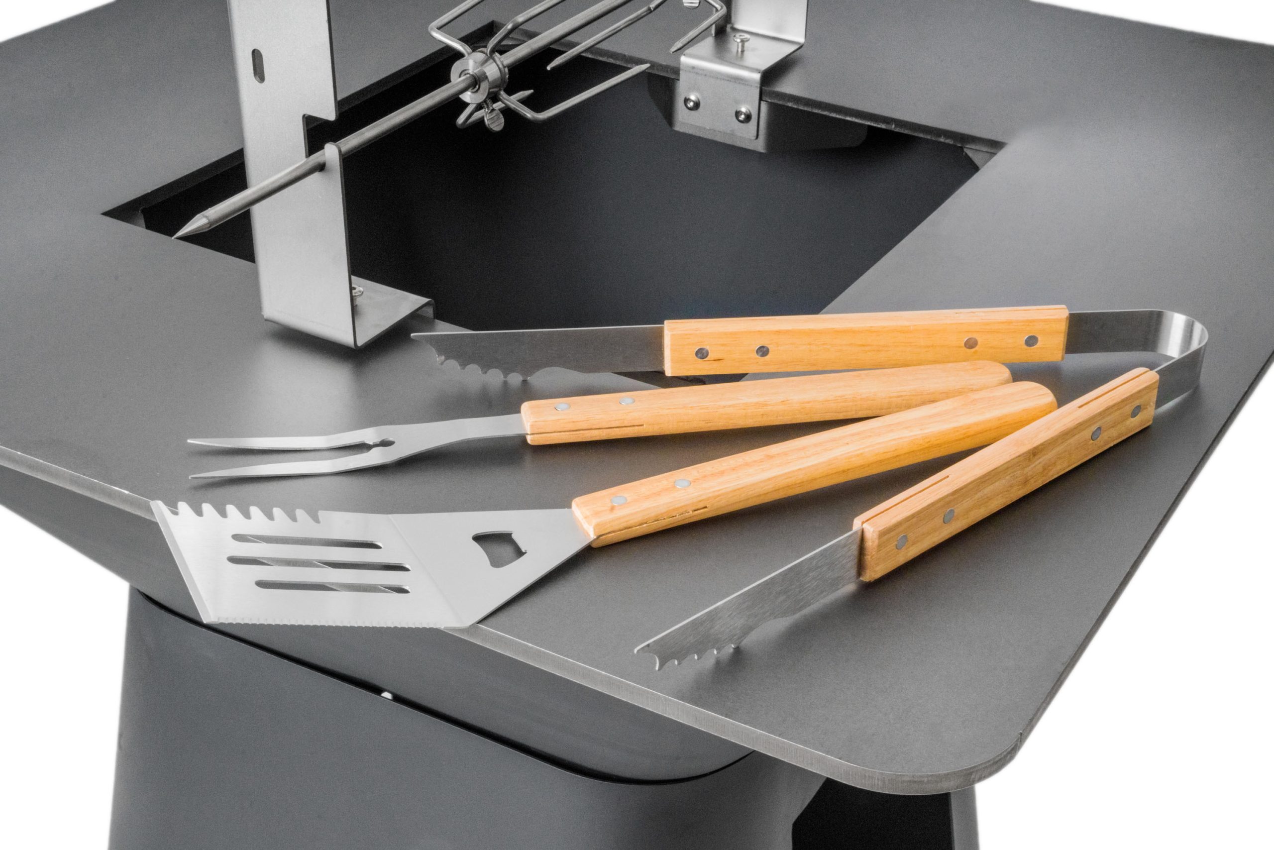 • komplett készlet forgatóval, grillvillával és grillfogóval