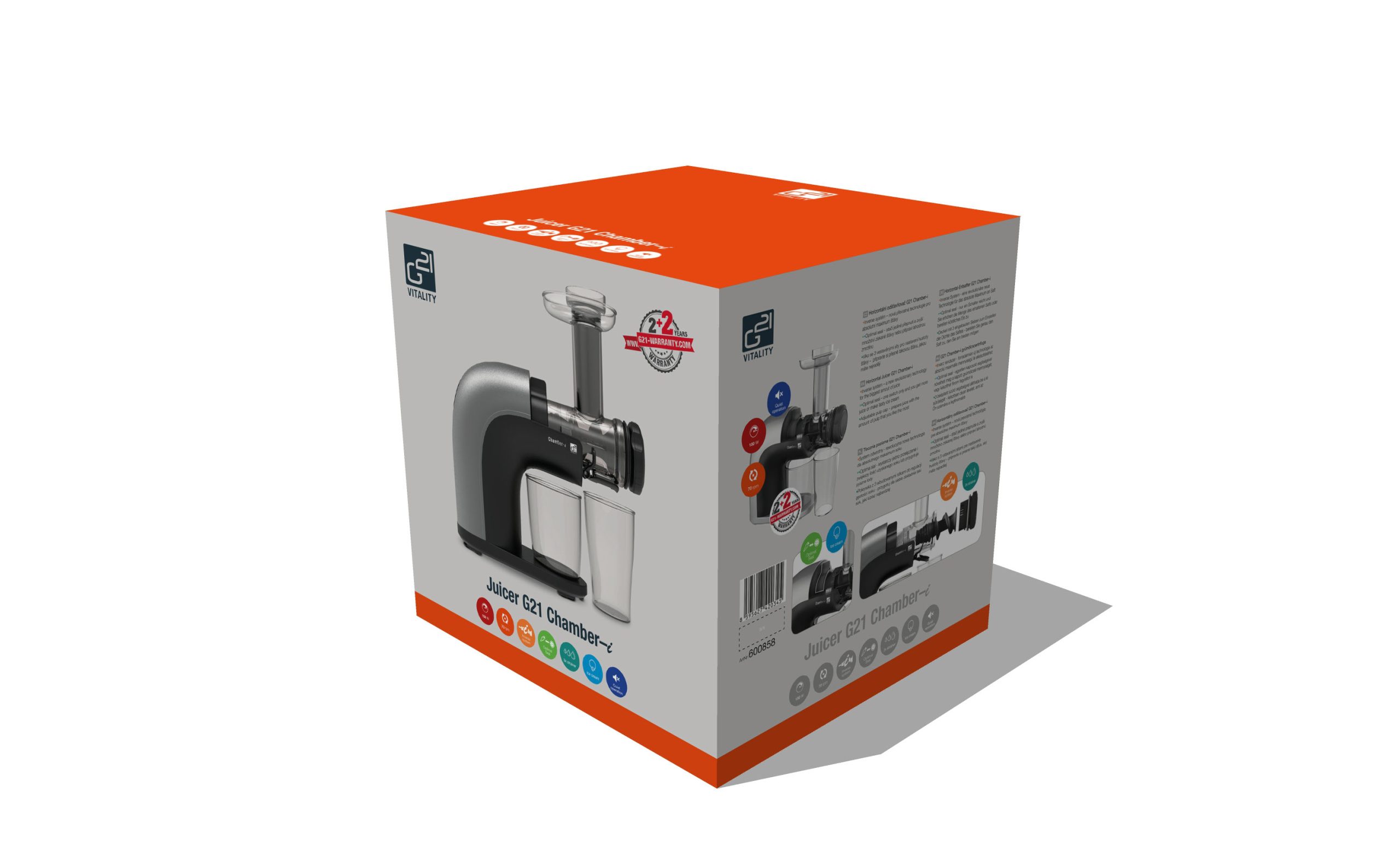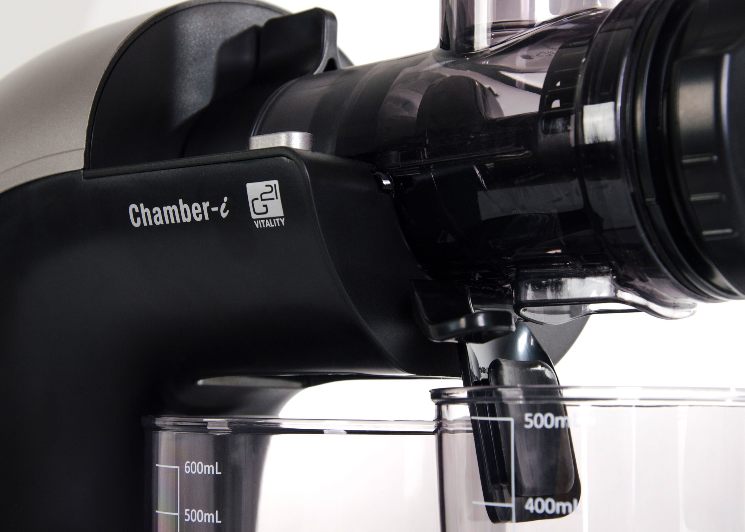 Forradalmi G21 Chamberi csigás gyümölcscentrifuga speciális Optimal Seal technológiával a gyümölcsök és zöldségek tökéletes préseléséhez. Az egyedülálló inverziós préselési módszerrel a puha és kemény gyümölcsökből is maximális mennyiségű levet nyer ki.