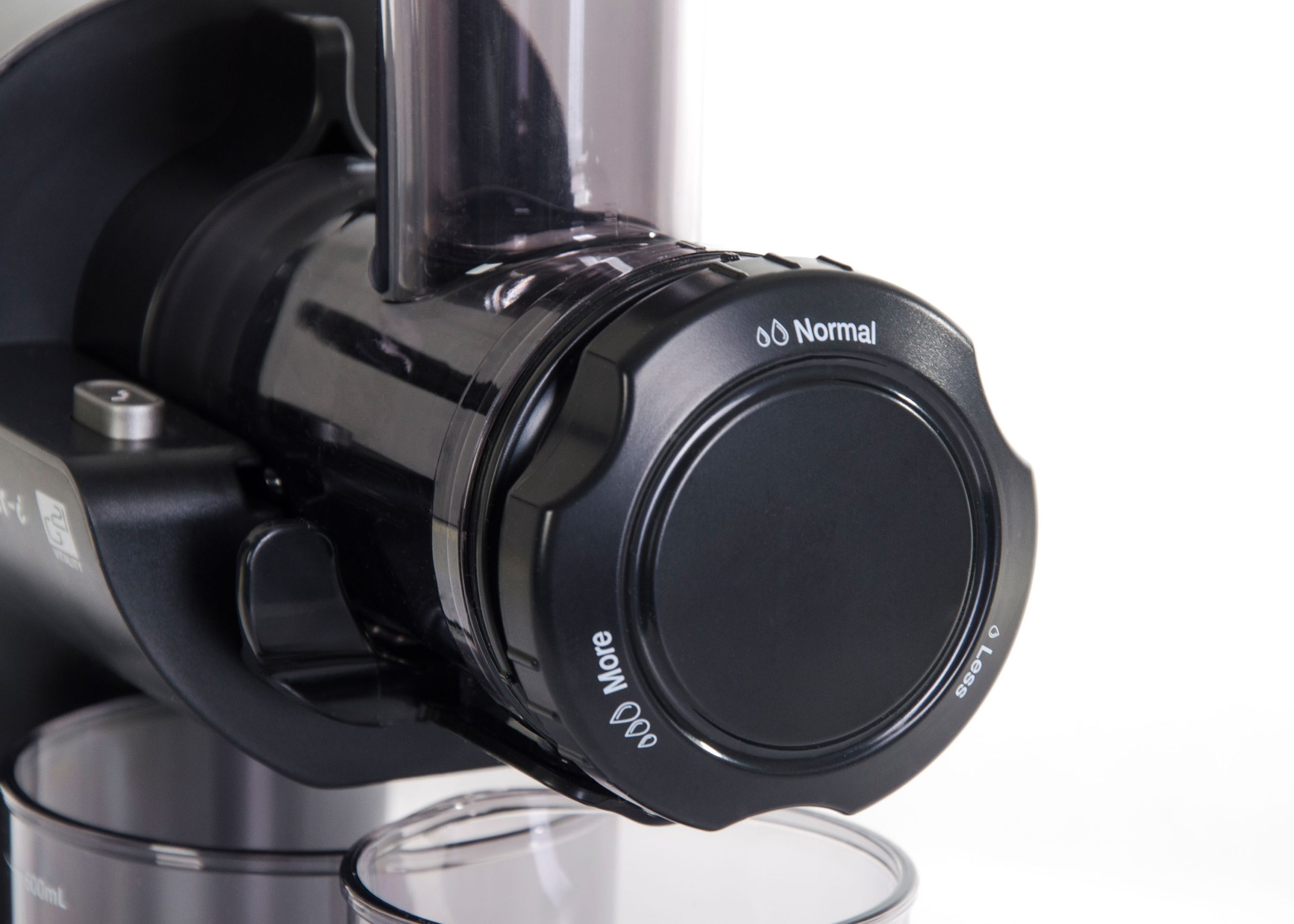 A préselőrész végén található okosan kialakított szűrők segítenek a lé sűrűségének beállításában. Szeretne tiszta gyümölcslevet vagy rostos dzsúszt? Csak fordítsa el a szűrők fedelét az óramutató járásával megegyező irányban, húzza ki, válasszon egyet a három préselési mód közül, majd helyezze vissza és rögzítse elforgatással. Készítsen poharat – egészségére!