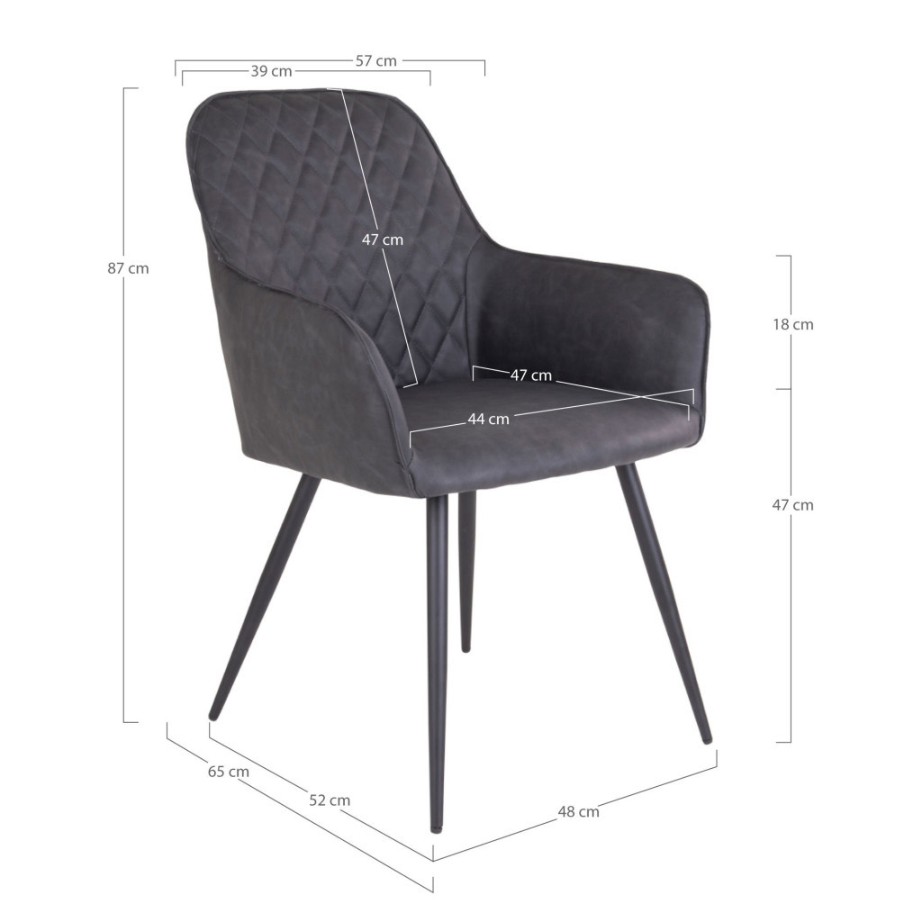 Harbo étkezőszék ecobőr sötétszürke – Minimalista design, maximális kényelem Elegáns sötétszürke árnyalat, megbízható szerkezettel A Harbo sötétszürke ecobőr étkezőszék finom, neutrális árnyalatával tökéletesen illik skandináv, modern vagy akár indusztriális enteriőrökbe is. Az anyag puha tapintású, ugyanakkor könnyen tisztítható – praktikus megoldás mindennapi használatra. Főbb paraméterei: Szín: sötétszürke Anyag: acél, rétegelt lemez, ecobőr (PU) Lábak: fekete fém Méret: 65 cm hosszú × 57 cm széles × 87 cm magas Ülésmagasság: 47 cm Ülésmélység: 47 cm Max. teherbírás: 110 kg Szállítási forma: lapra szerelt Kinek ajánljuk? Azoknak, akik a visszafogott színek szerelmesei, de nem mondanának le a minőségről és a kényelmes, időtálló bútorról sem. Válaszd a Harbo sötétszürke étkezőszéket, ha egy karakteres, mégis sokoldalú darabot keresel!