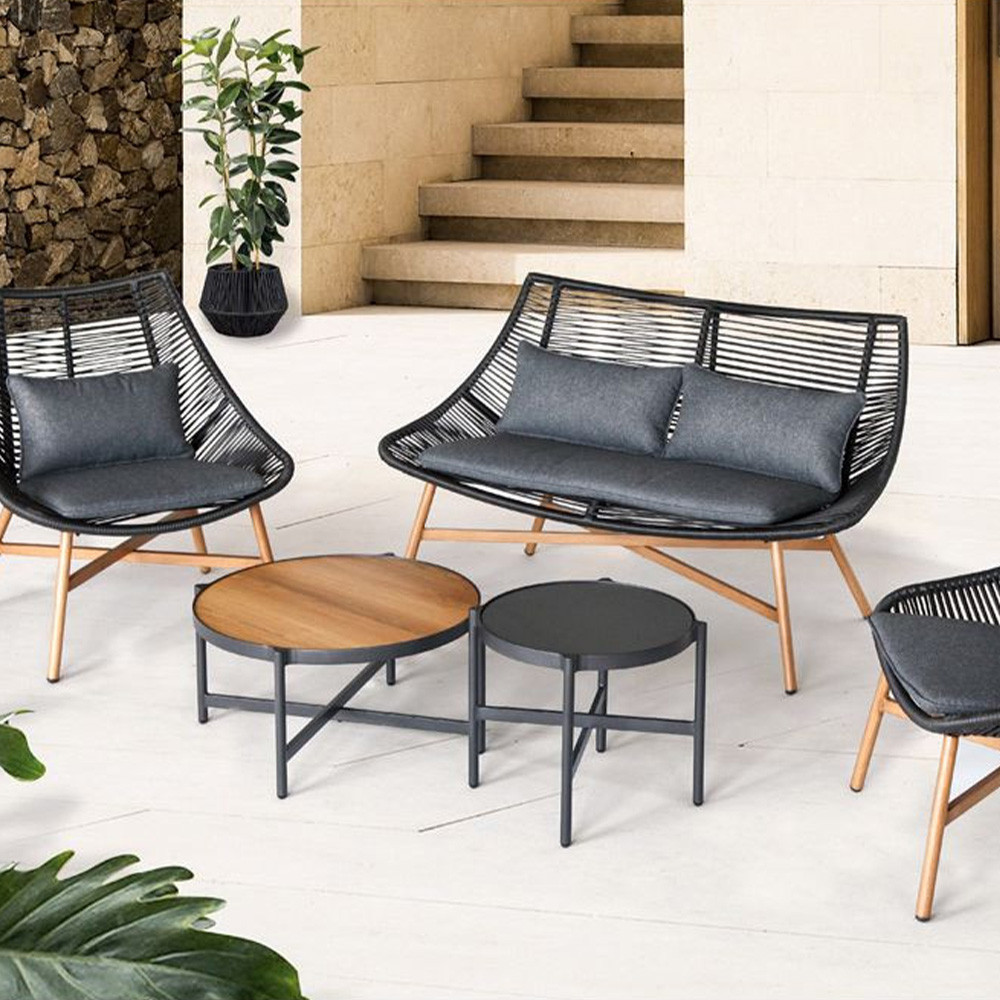 A kerti bútorokat érdekes kialakítása jellemzi, amely összhangban van a legújabb trendekkel . Az elegáns szövésű ülések fát utánzó lábakkal kombinálva tökéletesek lesznek a modern, minimalista és klasszikus elrendezésekhez. Érdekes megoldás itt akár két dohányzóasztal is, amelyek luxust adnak az egész kompozíciónak . Az ülés és a háttámla puha párnái elősegítik az ellazulást. A kávéskészlet minden vendégnek örömet okoz, a teraszt vagy a kertet a közös találkozások fókuszpontjává teszi. A készlet sikeresen használható lakberendezésben .
