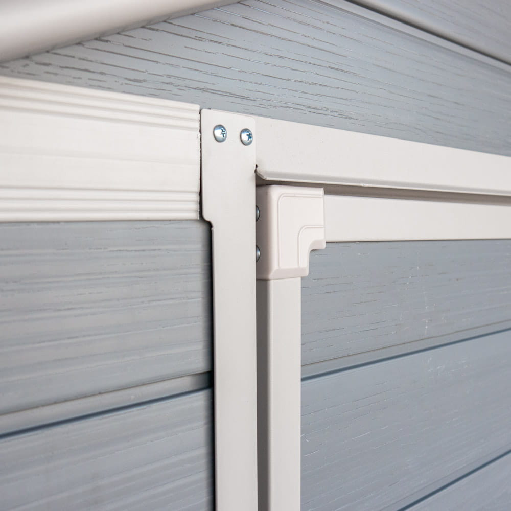A Hesler szerszámosház tökéletes megoldás kertje számára. Kiváló minőségű anyagokból, horganyzott acélból és polipropilénből készült, így biztosítja a tartósságot és ellenáll a különböző időjárási viszonyoknak. Ideális hely kerti szerszámok, kiegészítők, kisebb kerti bútorok tárolására. A nyeregtetőnek és a tömör falaknak köszönhetően a ház ellenáll az esőnek vagy a hónak.