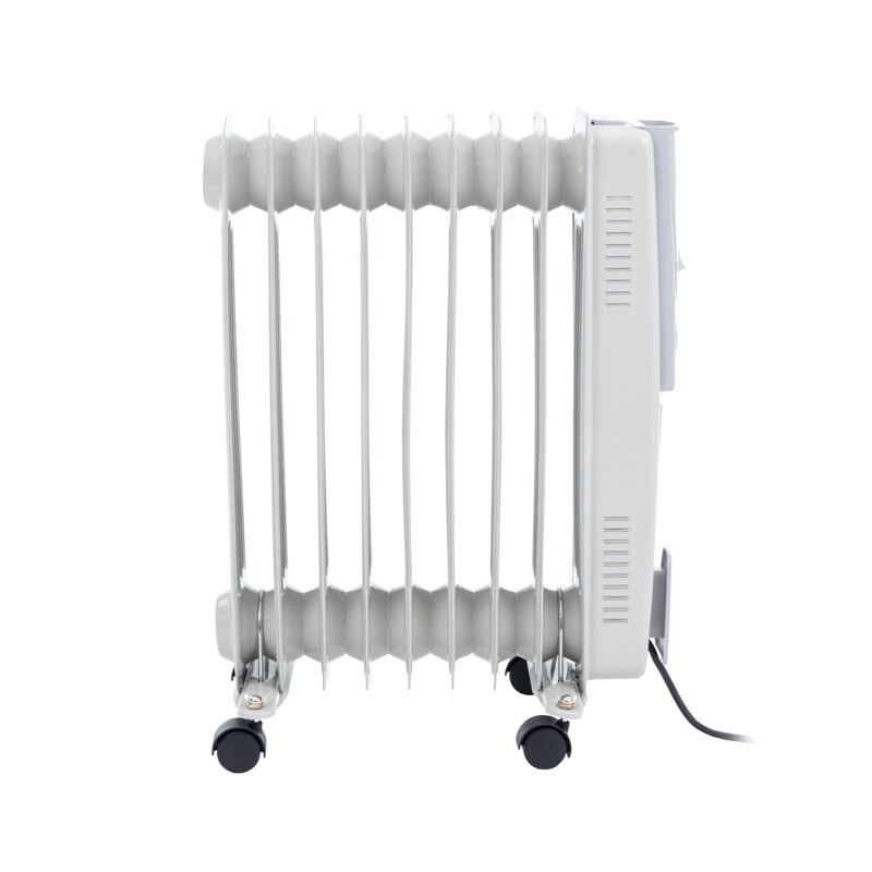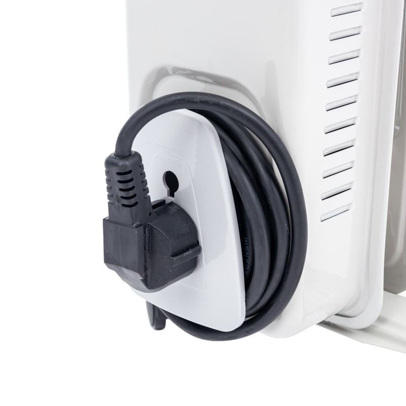A kézi állítású, olajtüzelésű elektromos fűtőelem fogantyúval rendelkezik a könnyű hordozhatóság érdekében. Az alsó rész kerekei és a beépített szállítófogantyúk különösen hasznosak a radiátor mozgatásában . A 9 bordás elektromos fűtés kábeltartóval rendelkezik, így nem akadályozza a használatát.
