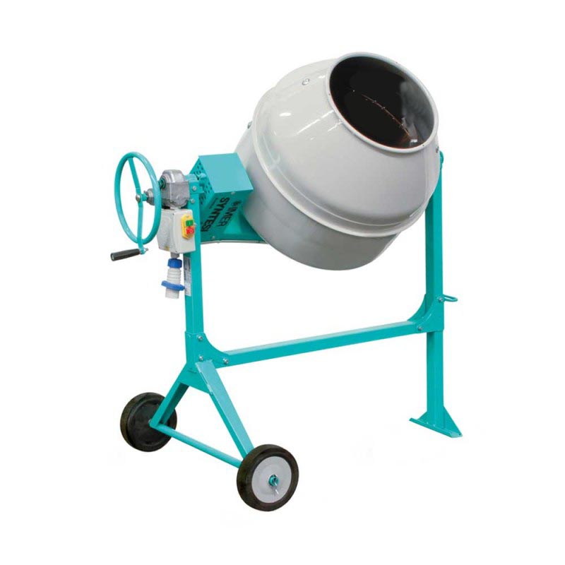 Műszaki adatok: Keverődob térfogata: 138 l Keverési mennyiség: 100 l Dob átmérő: 610 mm Kerekek méretei: 200×50 mm Motor teljesítmény: 0.3 kW Feszültség: 230 V Zajszint a kezelőre nézve: 72 dB Gép súlya: 54 kg Gép méretei sz/h/m (mm): 800x1330x1220