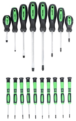 18-részes Csavarhúzó készlet HTS-18 • 8 Csavarhúzó mágneses fejjel • 10 Precíziós csavarhúzó Csavarhózó mágneses fejjel: PH (+) Csillag • 2x38mm / 1x80mm / 2x100mm / 3x150mm SL (-) Lapos • 6x38mm / 4x75mm / 6x100mm / 8x150mm Precíziós csavarhúzó: PH (+) Csillag • 00x50mm / 0x50mm SL (-) Lapos • 2×50 / 2.5x50mm / 3x50mm T Torx • T6, T7, T8, T9, T10 • Króm-Vanádium-Acél • Csomagolás: Buborékfóliában • Buborékcsomagolás mérete (mm): 313 (H) x 70 (SZ) x 382 (M) • Bruttó súly: 1,17 kg Külső doboz Külső doboz EAN kódja: 3830042564294 • Csomagolás mérete (mm): 400 (H) x 330 (SZ) x 390 (M) • Mennyiség: 6 db/doboz • Nettó súly: 6,5 kg • Bruttó súly: 7,0 kg