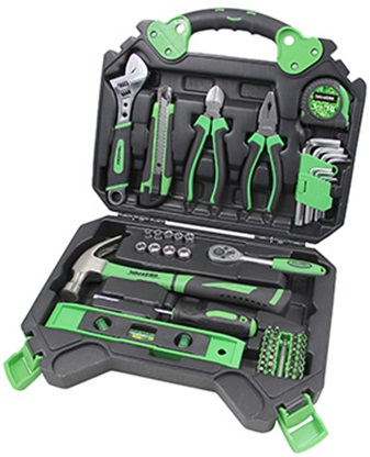 • Állítható csavarkulcs: 200 mm (8”) • Tapétavágó kés: 18 mm • Átlós oldalú fogó: 150 mm (8“) • Kombinált fogó: 150 mm (8″) • Mérőszalag: 3 m x 16 mm • Imbuszkulcs: 1.5 – 10 mm • Racsnis csavarkulcs: 6,35 mm (1/4”) • Dugókulcs: 1/4“x 5, 6, 7, 8, 9, 10, 11, 12, 13 mm • Szeghúzó kalapács: 227g (8 oz) • 25 mm-es Toldalékok: (32 db) • Laposfejű bit (SL): 3, 4, 5, 5, 6, 6, 7 • Csillagfejű bit (PH): 0, 1, 2, 2, 3 • Pozidriv bit (PZ): 0, 1, 2, 2, 3 • Imbusz bit (M): 1.5, 2, 3, 4, 5, 6 • Négyzet alakú bit (PH): 1, 2, 3 • Torx bit (T): 10, 15, 20, 25, 27, 30 • Vízmérték: 220 mm (9”) • Mágneses fogantyú: 6,35 mm (1/4”) • Mágneses toldószár: 50 mm • Csomagolás: Bőrönd • Bőrönd méret (mm): 350 (H) x 83 (SZ) x 290 (M) • Bruttó súly: 3,33 kg