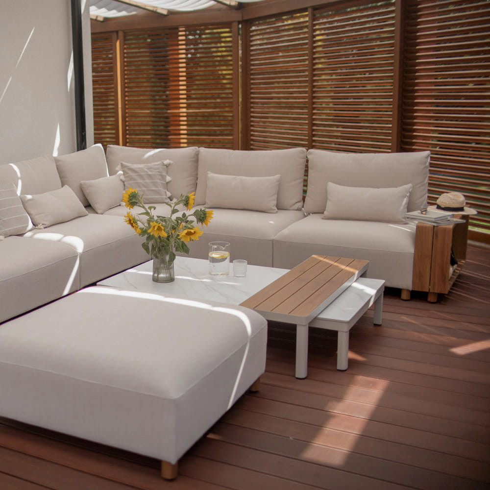 • A 8 elemből álló moduláris felépítésnek köszönhetően a kerti bútorok könnyen az egyéni igényekhez igazíthatók.