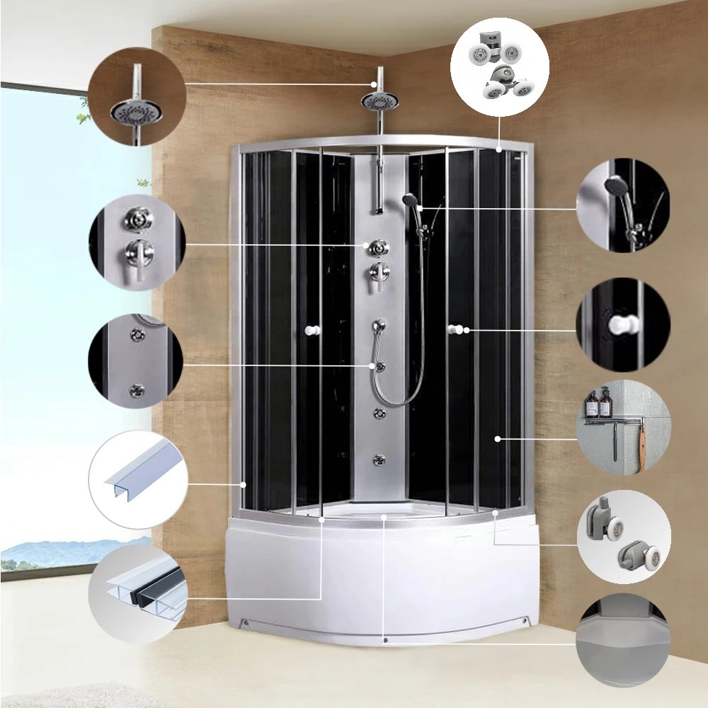 A zuhanykabinok kiváló minőségű króm ajtófogantyúkkal vannak ellátva