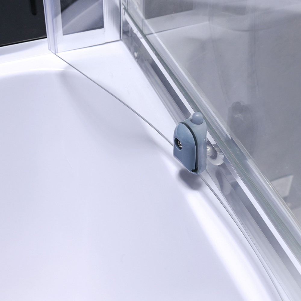 A Karolino mélytálcás zuhanykabin 4 mm vastag víztiszta edzett biztonsági üvegből készült, amely krómozott alumínium kerettel és fekete hátfallal egészül ki, így elegáns megjelenést biztosít. Az esztétikus fém ajtófogantyú és a dupla csapágyas felső görgők garantálják a kényelmes és stabil használatot. A kiakasztható rugós alsógörgők megkönnyítik a karbantartást, a mágneses ajtózár pedig gondoskodik a tökéletes szigetelésről.