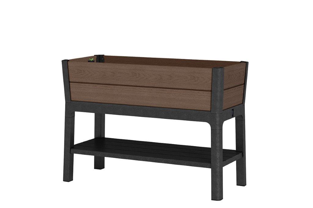 A Keter Darwin Elevated Pro virágláda kiváló minőségű műanyagból készült, amely ellenáll az UV-sugárzásnak és a kedvezőtlen időjárási körülményeknek. A valósághű barna faerezetes árnyalat bármelyik kültéri környezetbe tökéletesen illeszkedik. A megmagasított vályúforma kényelmes munkát biztosít a talajjal, és az öntözőrendszernek köszönhetően nem kell minden nap locsolni. Az alsó polc 10 kg-ig terhelhető, így kéznél tarthatod a kerti szerszámokat vagy cserepeket. Tökéletes választás, ha kis helyen szeretnél egy praktikus és mutatós mini kertet kialakítani.