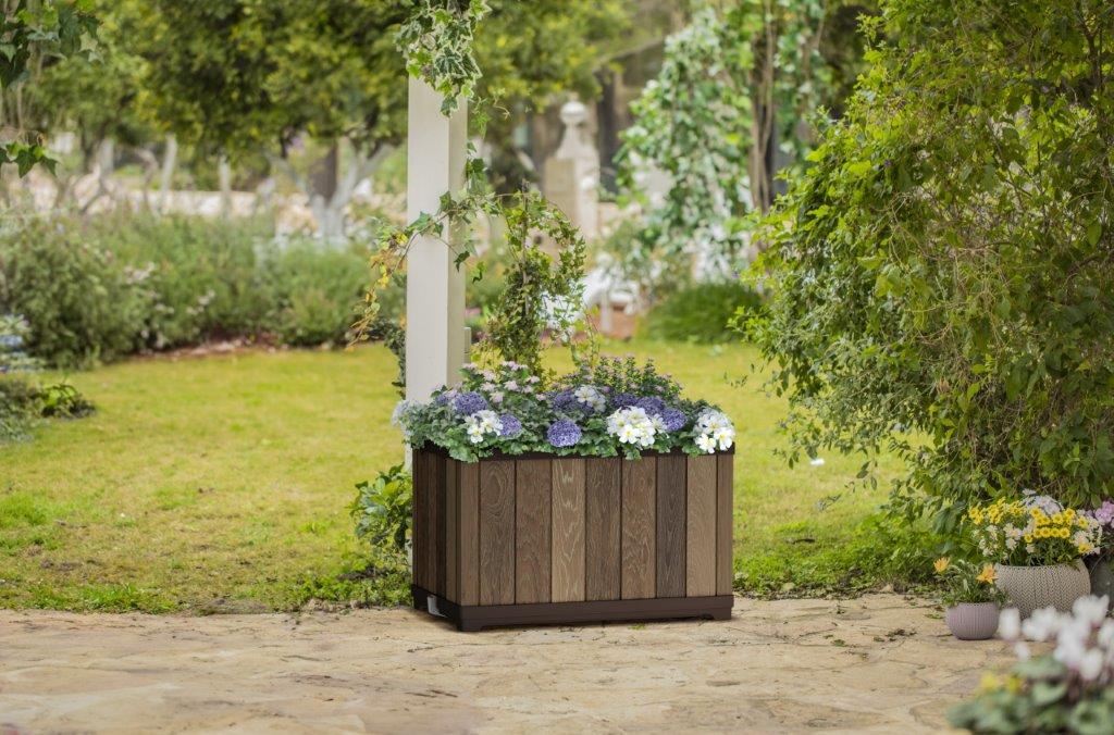 A DecoCoat technológia révén a virágtartó ellenáll az időjárási hatásoknak, rozsdásodásnak és korhadásnak. Színét hosszú ideig megőrzi, így még évek múlva is úgy néz ki, mintha új lenne. A falak fa hatású textúrája természetes megjelenést biztosít, ráadásul karbantartása is egyszerű.