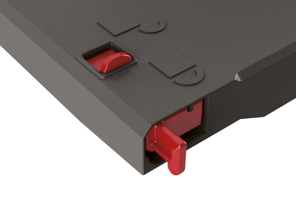 A szekrény Assisted Opening System (AOS) rendszerrel rendelkezik, amely a fém zsanéroknak köszönhetően biztosítja az ajtók sima és stabil záródását. A nagyobb biztonság érdekében lakattal lezárható a kialakított nyílásokon keresztül. Az ötödik stabilizáló láb még teljes terhelés esetén is szilárd tartást nyújt.
