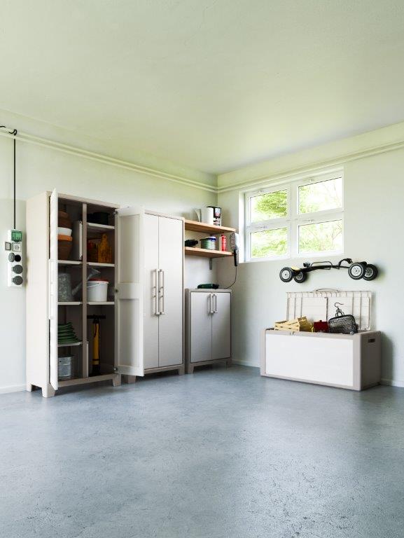 A Gulliver Low alacsony helyiségekhez lett tervezve, miközben praktikus és biztonságos tárolást biztosít. Használhatja otthoni műhelyben, erkélyen vagy kerti házban. A UV-védelemnek és vízálló kialakításnak köszönhetően még mostohább körülmények között is megállja a helyét.