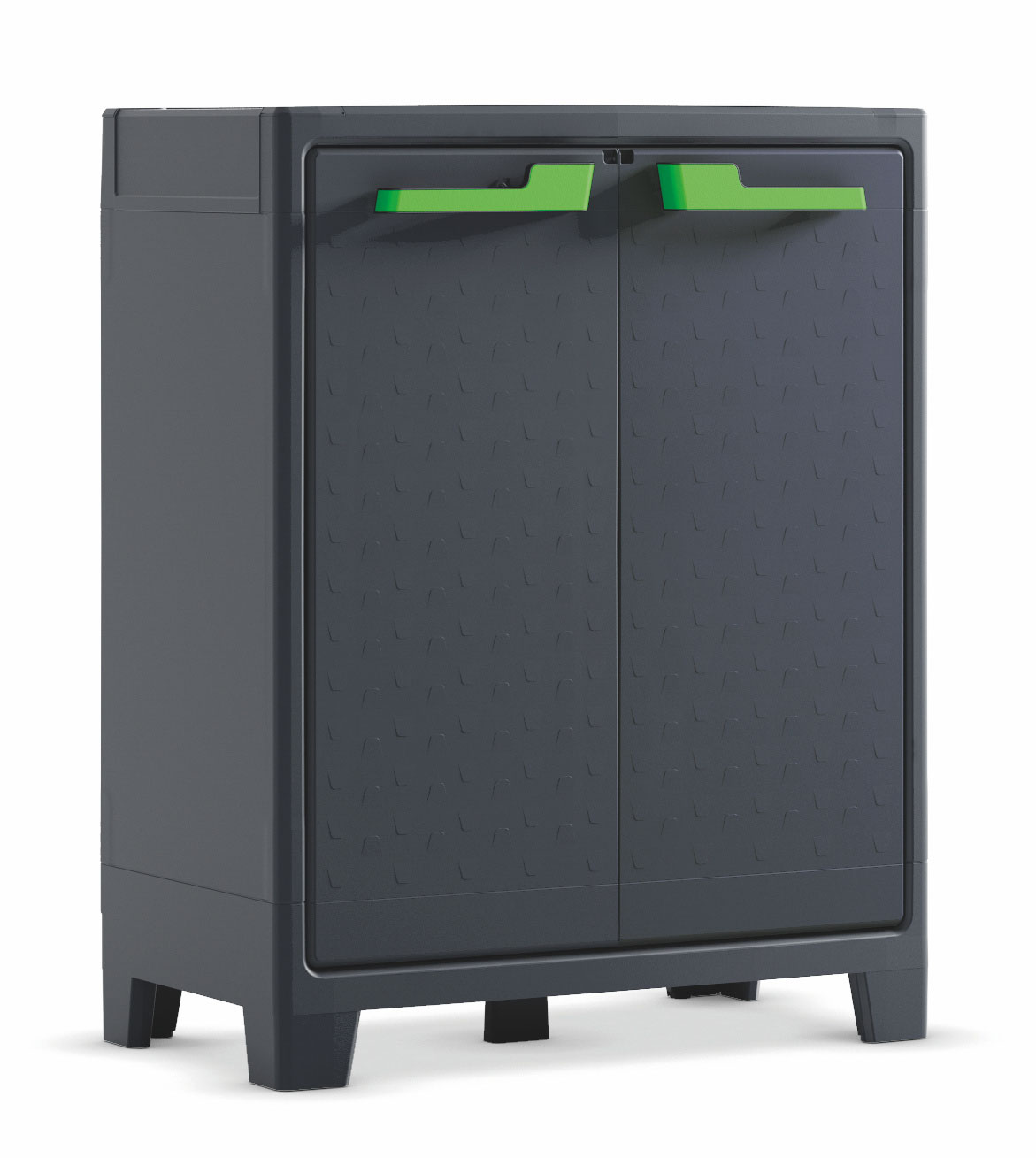 - 1x Keter Moby Low szekrény polcokkal, lábakkal és zárható ajtókkal