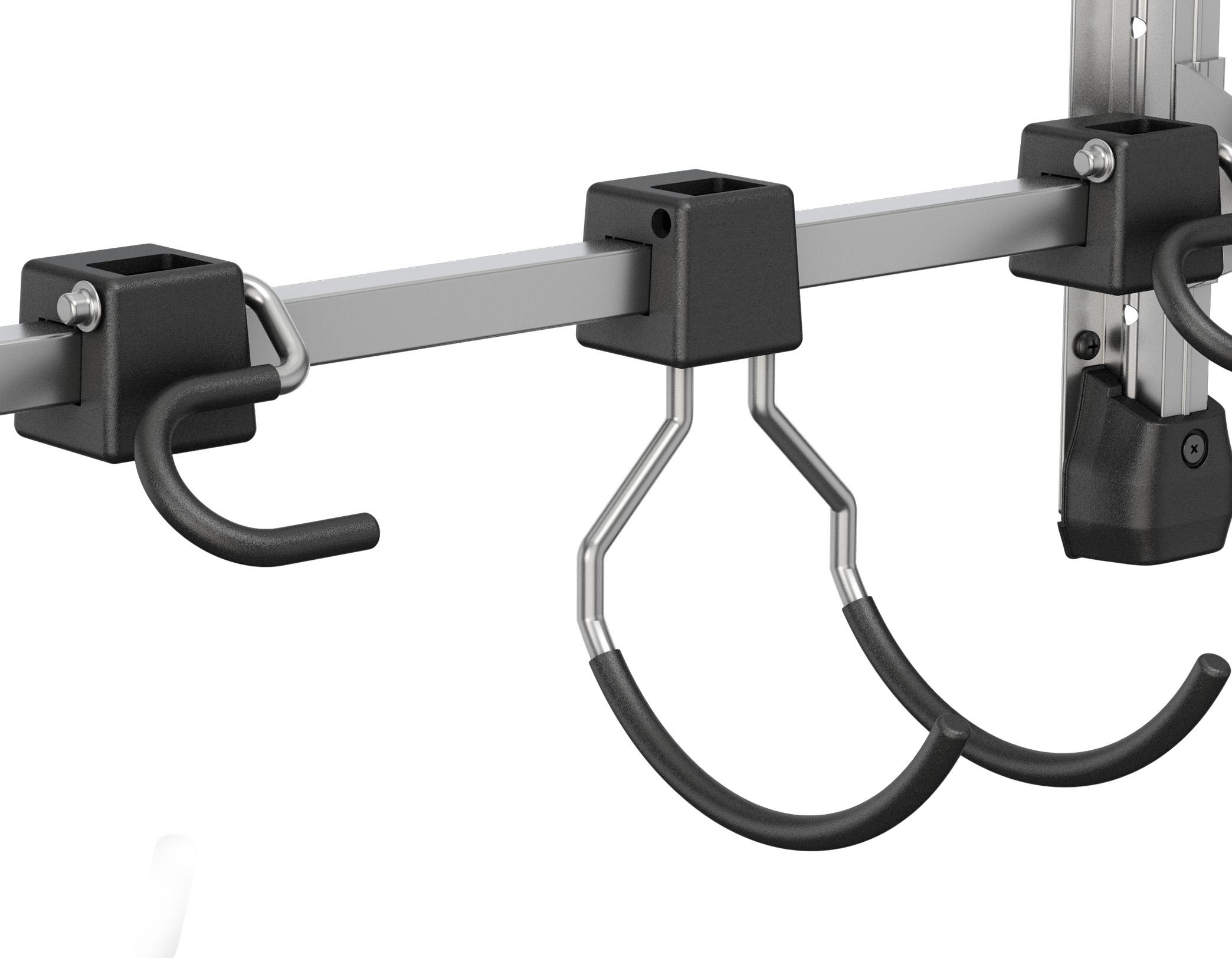 Az akasztó horganyzott acélból készült, amely ellenáll a víznek és a rozsdának. Emellett műgyanta bevonattal van ellátva, amely védi az akasztott tárgyakat a karcolásoktól. A kampók pozíciója állítható az egyéni igényeknek megfelelően, mivel elcsúsztathatóak. Takarítson meg tárolóhelyet kerti házában, és válassza a Keter akasztót.