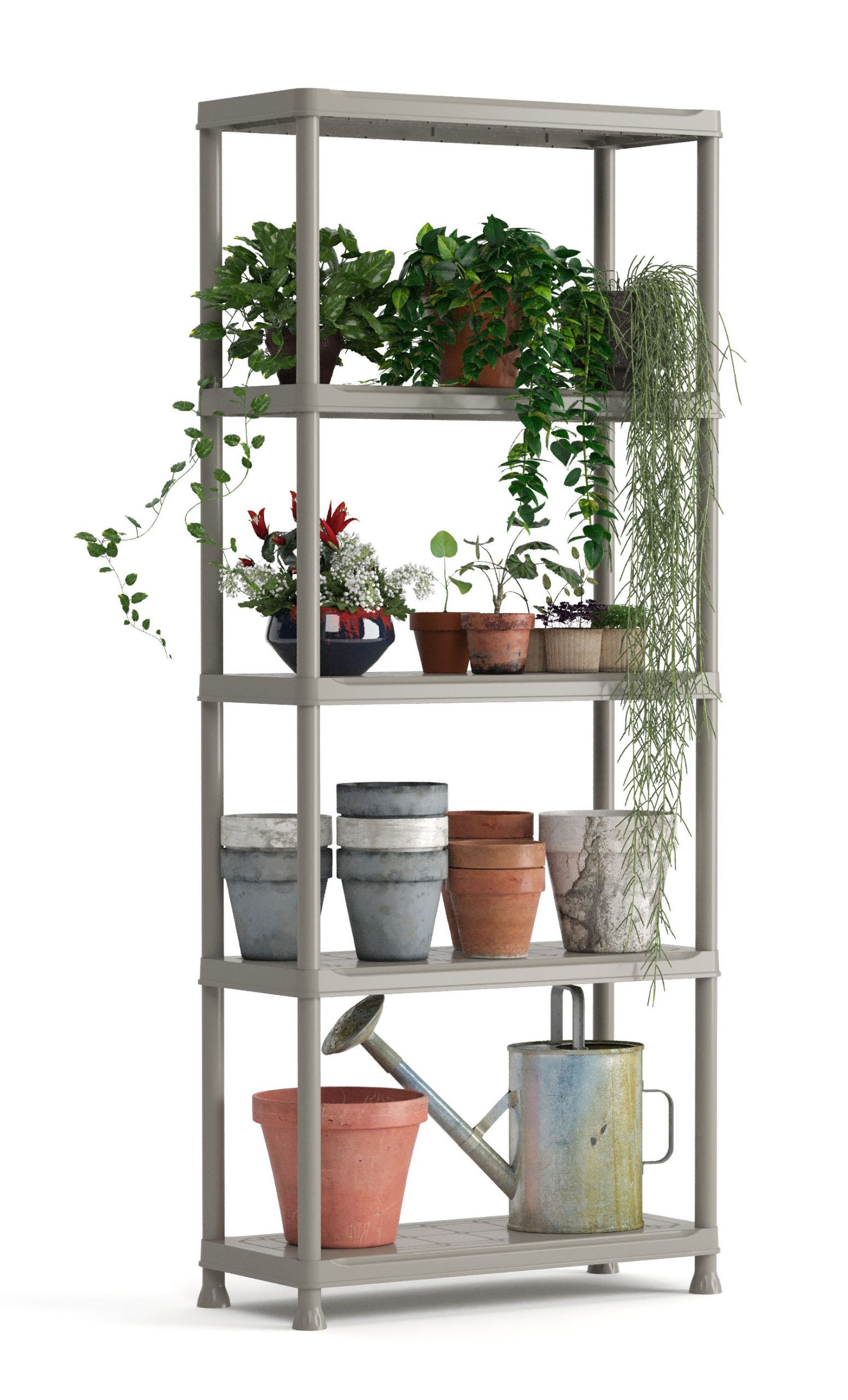 A Keter Planet 75/5 polcállvány karbantartásmentes kialakításban magas ellenállással a légköri hatásokkal és mechanikai elhasználódással szemben használható háztartásban, garázsban, pajtában, pincében, tető alatt vagy bárhol máshol. A polcállvány magas lábakkal van ellátva a beltérben lévő padlók egyszerű és praktikus tisztítására, amit értékelni fog a takarításnál.