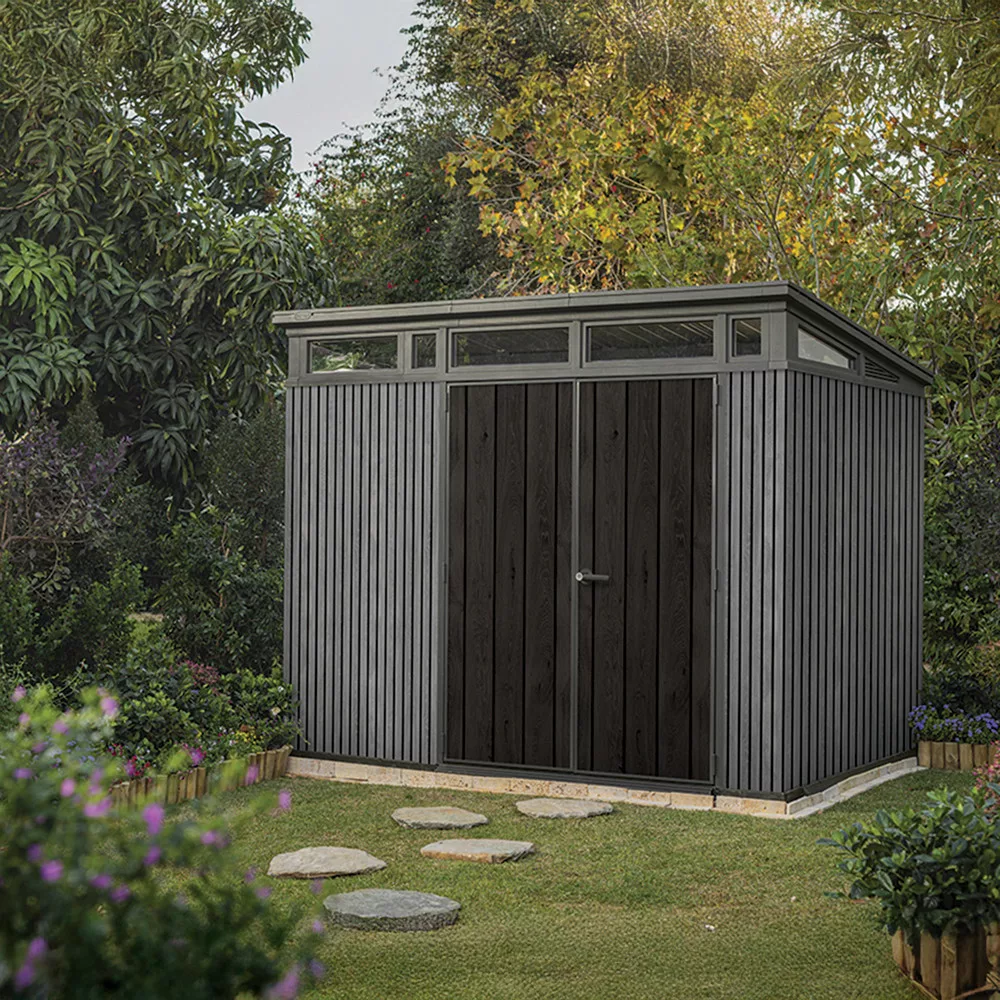 - Akik modern és stílusos kerti tárolót keresnek – A velencei szürke színű, fa hatású borítás minden kertben esztétikus megjelenést biztosít.