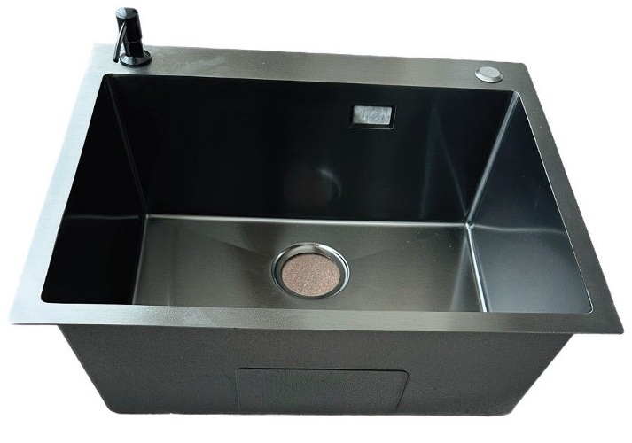 Kevmil MEX 600.500 Exkluzív design extra mély egymedencés rozsdamentes mosogató adagolóval 60 x 50 x 23 cm