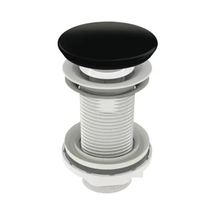 Klikk – klakk leeresztőszelep – KEREK – matt FEKETE – túlfolyó nélküli mosdókagylóhoz – Ø 73 mm