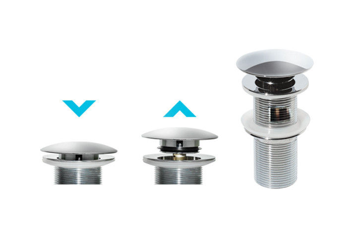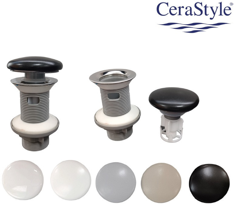 Klikk – klakk leeresztőszelep – KEREK – matt szürke – túlfolyós mosdókagylóhoz – Ø 73 mm