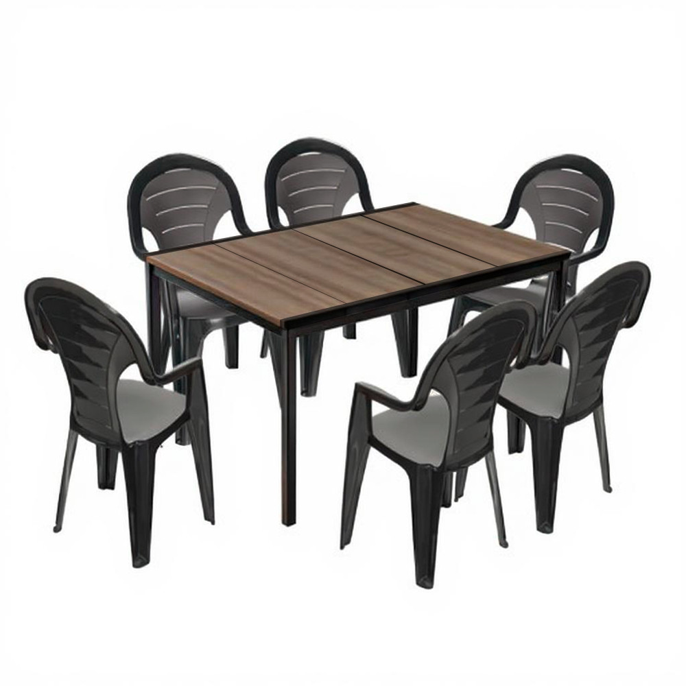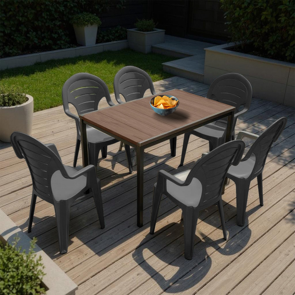 Lagos 6+1 kerti bútor garnitúra dió-grafit-Elegáns és strapabíró kültéri étkezőgarnitúra