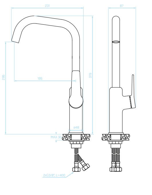 LAVEO ALANIS álló csaptelep, króm L alakú K.