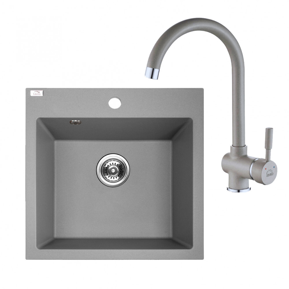 Laveo ALENA szürke szett álló csappal, helytakarékos szifonnal