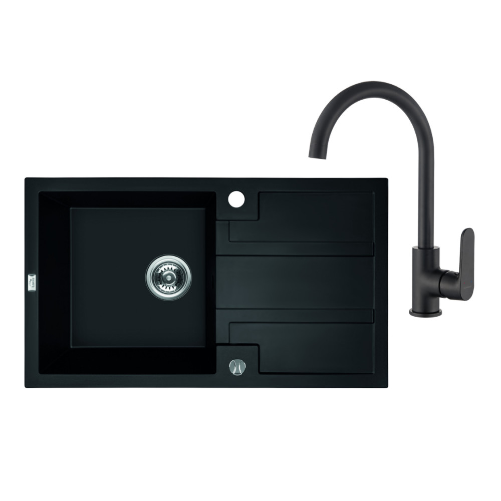 Laveo BARBADOS csepptálcás szett álló csappal, matt fekete – SRB_711BL