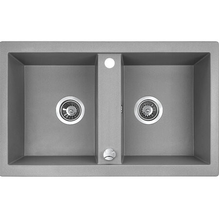 Laveo BARBADOS szürke kétmedencés mosogató dugókiemelős helytakarékos szifonnal – SRB_520T