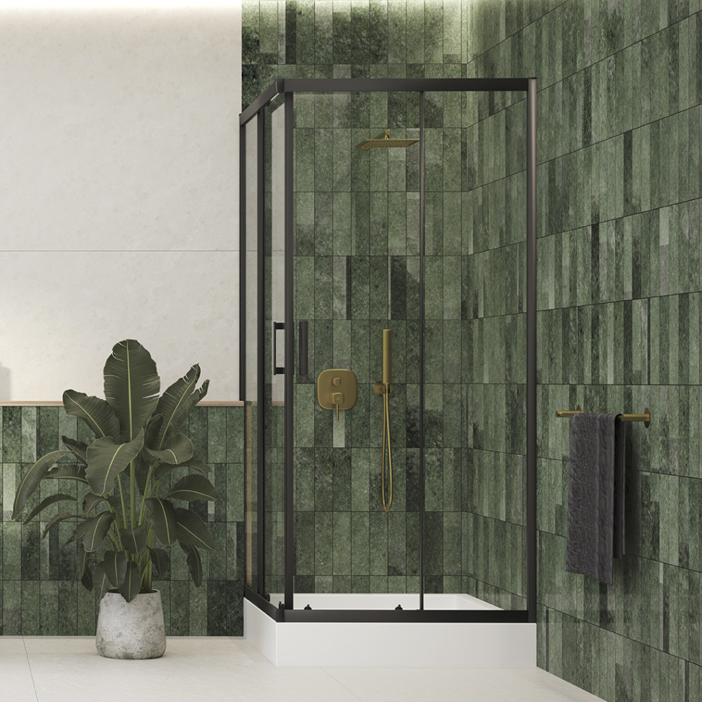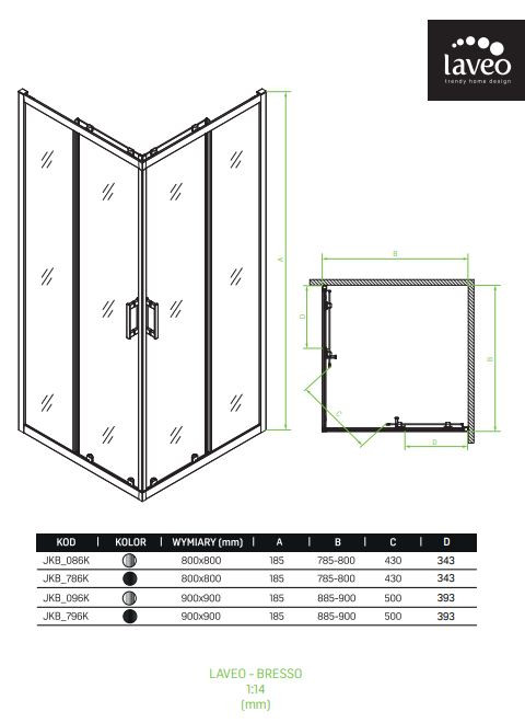 LAVEO BRESSO félkör zuhanykabin zuhanytálcával, 80x80x185 cm átlátszó üveg/fekete – JKBB786Z