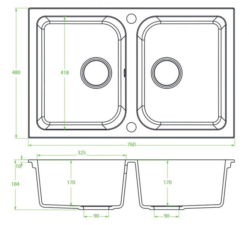 Laveo CELIA fehér kétmedencés mosogató dugókiemelős helytakarékos szifonnal – SRC_620T