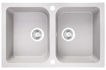 Laveo CELIA fehér kétmedencés mosogató dugókiemelős helytakarékos szifonnal – SRC_620T