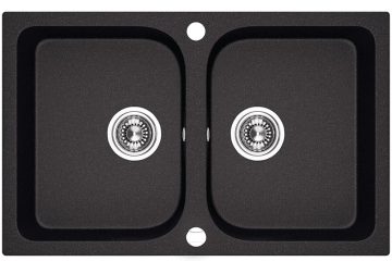 Laveo CELIA szemcsés fekete kétmedencés mosogató dugókiemelős helytakarékos szifonnal – SRC_720T
