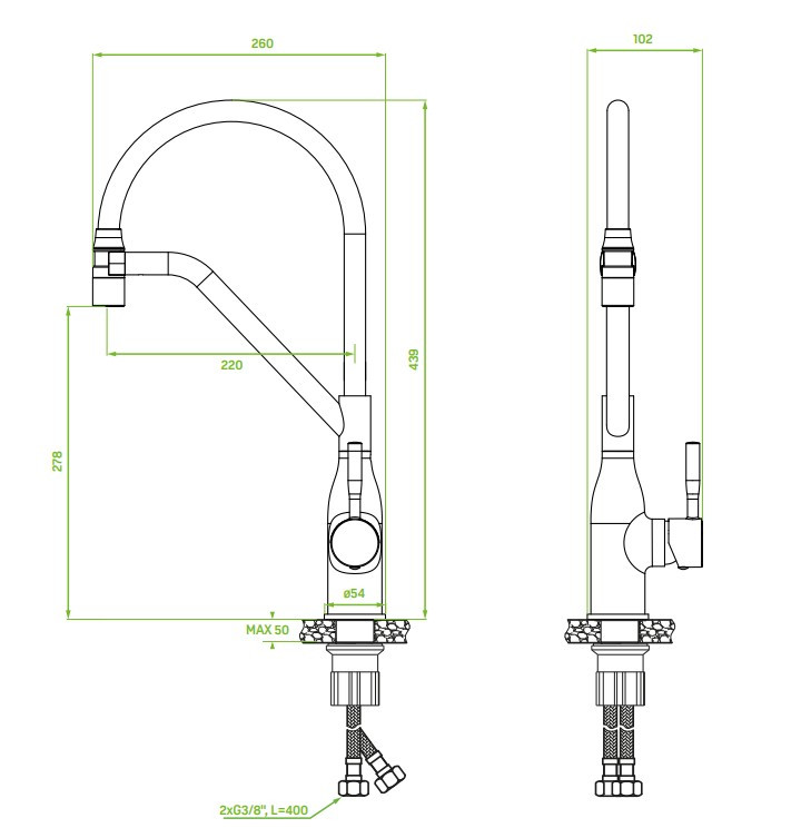 ✔ Rugalmas, U alakú kifolyó – könnyű manőverezést és pontos vízáramlást tesz lehetővé, jelentősen leegyszerűsítve a mindennapi konyhai feladatokat.