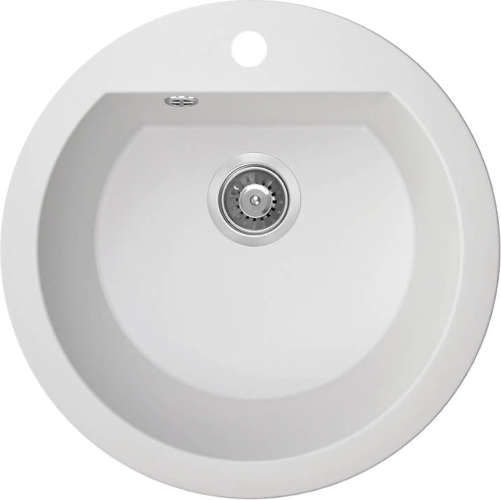 Laveo DAFNE egykör fehér mosogató csaplyukkal, helytakarékos szifonnal – SRD_680T