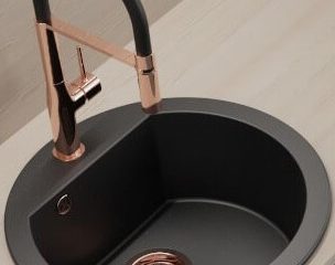 Laveo DAFNE egykör matt fekete mosogató csaplyukkal, helytakarékos szifonnal – SRD_780B