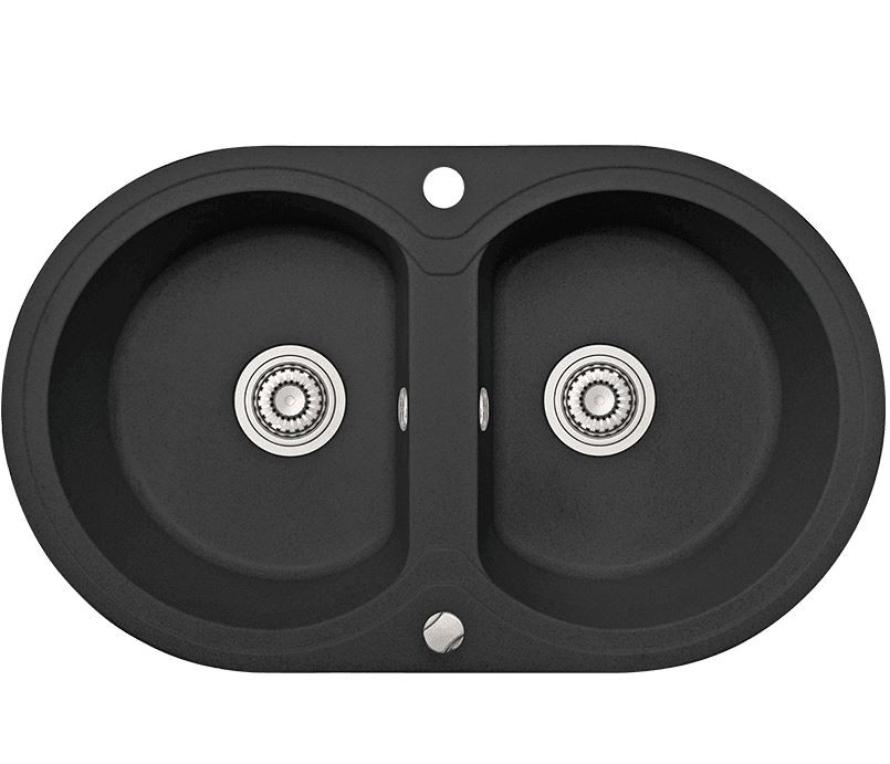 Laveo DAFNE kétkör szemcsés fekete mosogató dugókiemelős helytakarékos szifonnal – SRD_720T