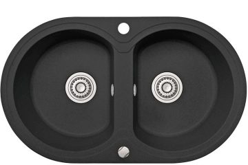 Laveo DAFNE kétkör szemcsés fekete mosogató dugókiemelős helytakarékos szifonnal – SRD_720T