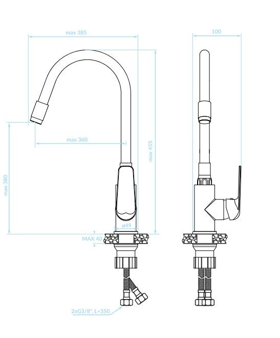 LAVEO ELZA álló csaptelep rugalmas tömlővel, matt fekete / króm K.