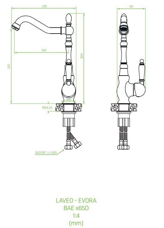 Az Evora konyhai csaptelep egy egyedi antik megjelenés ihlette, modern díszítéssel. Igazi klasszikus időtlen eleganciájával, egy lágy formákból és egyszerű dizájnból álló sorozat, amely a múltból idézi a stílust. Sárgarézből készült és kiváló minőségű krómmal kidolgozott, ez az egykaros csaptelep szabadon álló opció, elforgatható L-alakú kifolyóval.