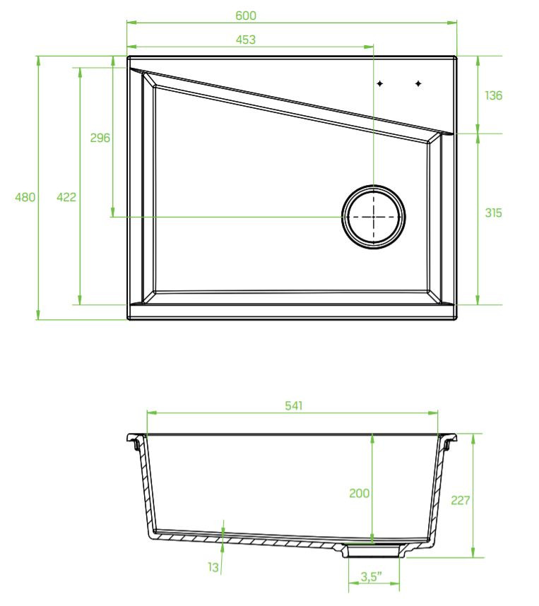 Laveo GRENADA csaplyukas matt fekete mosogató automata dugókiemelős, helytakarékos szifonnal